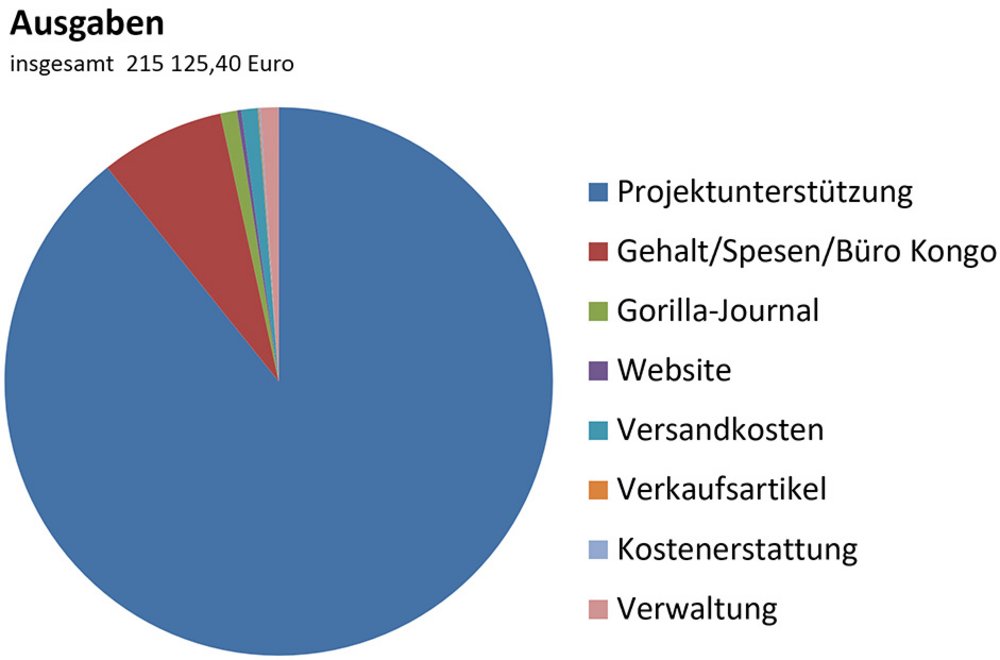 Weder der Vorstand noch die anderen Aktiven werden für ihre Arbeit bezahlt, und wir haben kein Büro, für das wir Miete zahlen müssen. Neben der direkten Unterstützung von Gorillaschutzprojekten, die den Großteil unserer Ausgaben ausmacht, fließt ein Teil unserer Einnahmen in die Herstellung von Informationsmaterial. Die Jahresabschlüsse mit Einnahmen und Ausgaben werden regelmäßig im Gorilla-Journal veröffentlicht.